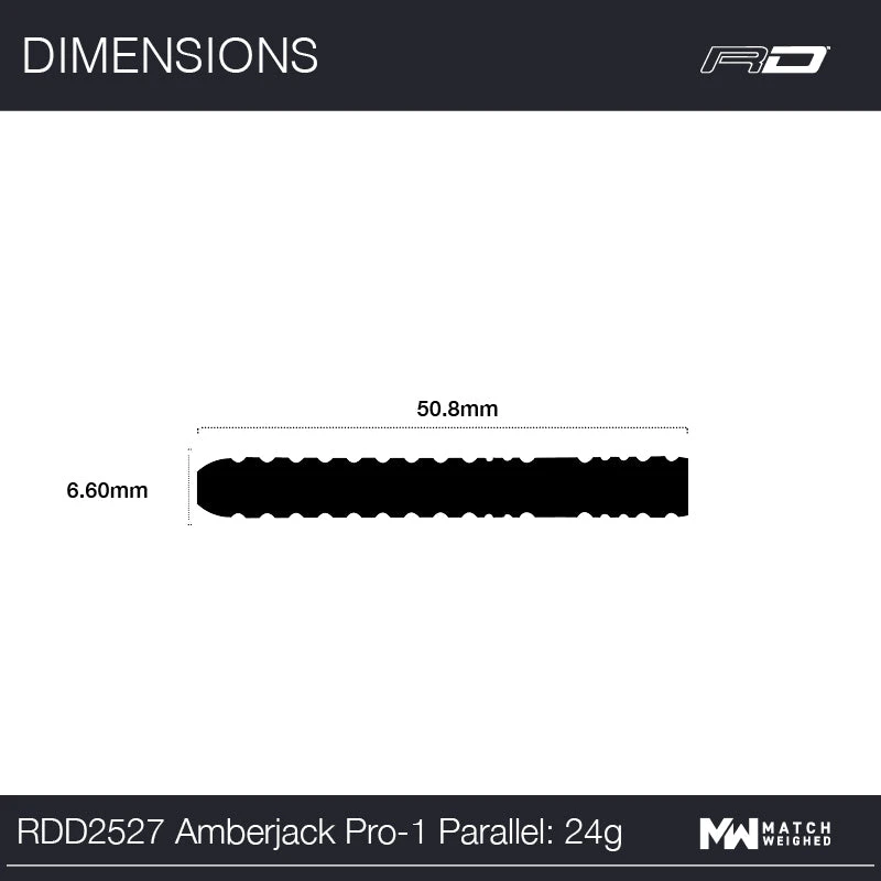A favourite dart for dedicated players covering the major milestone of over four decades in production, proof that its history is based on the paragon of reliability and performance. Amberjacks are distinguished by their distinctive black and orange styling and come in both precision cut ringed and knurled designs.