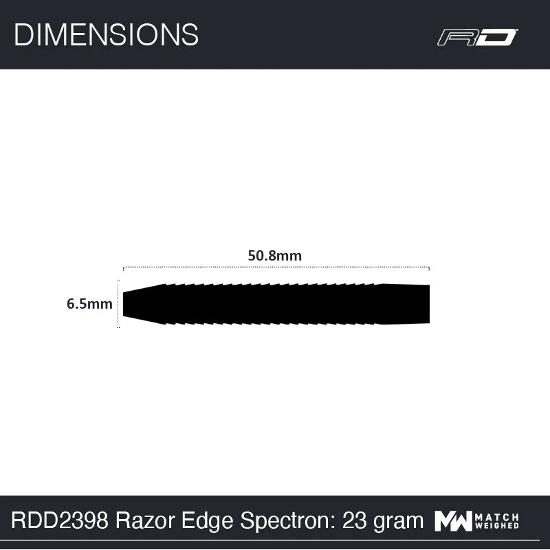Stunning looks, muscular design and grip blends perfect balance and feel delivering 100% exhilaration when you hit the oche. Pure Razoredge.