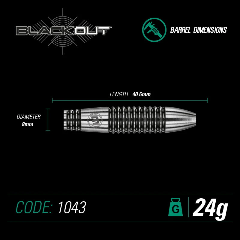 The Winmau Blackout incorporates precision-engineering and classic style to produce a dart with stunning performance characteristics and a perfect balance. Manufactured from Winmau’s unrivalled 90% tungsten technology, this dart won’t leave you in the dark on the oche!