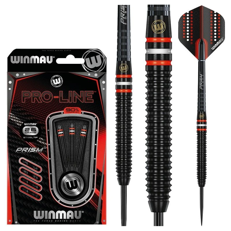 These darts encompass a modern, sporty look combined with a classic streamlined barrel design. Featuring the most tried and tested groove pattern, these darts are perfectly weighted and overlaid with our signature Onyx coating. Finished with the striking look of the iconic Pro-Line series. Military grade 90% tungsten alloy.